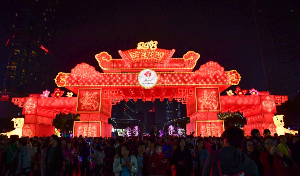 Illuminated decors are seen during the Spring Festival in Guangzhou, China. The Chinese Lunar New Year also known as the Spring Festival, which is based on the Lunisolar Chinese calendar, is celebrated from the first day of the first month of the lunar year and ends with Lantern Festival on the fifteenth day.  Photo by Stringer/Anadolu Agency/Getty Images